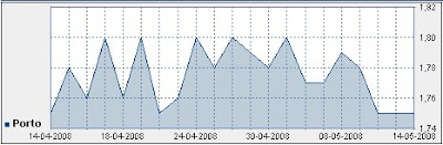 Se compararmos a prestação bolsista do FC Porto com a dos outros dois clubes cotados podemos concluir que durante a maior parte do ano as acções do SLB lideraram as quedas (como não poderia deixar de ser!) e acabaram por desvalorizar 40% no mesmo período. As acções do SCP acabaram a desvalorizar também 40% no último ano e estiveram durante largos períodos com desvalorizações superiores às do FC Porto. No que diz respeito a quedas acentuadas ninguém se fica a rir. Em apenas um ano os três grandes perderam quase metade do seu valor em bolsa. O gráfico seguinte ilustra esta descrição: